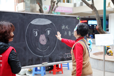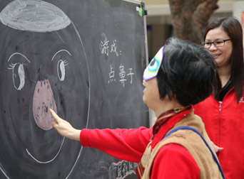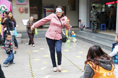 | “蒙眼過障礙”游戲 | 現場義工幫忙 戴眼罩 | 居民在社區(qū)公園內排練 | 有獎問答 |