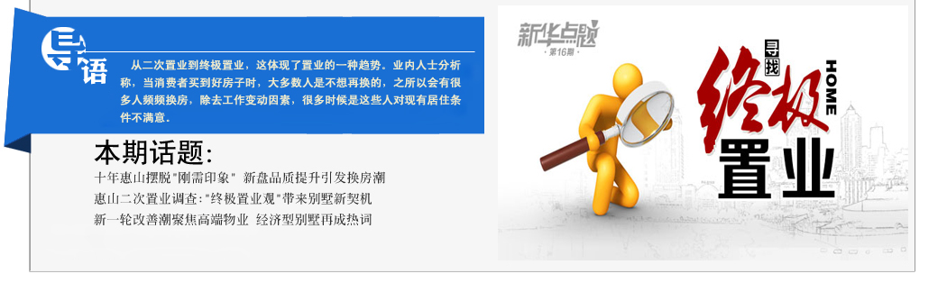 近日,新華網(wǎng)針對惠山區(qū)進行了一場百位購房者二次置業(yè)大調(diào)查,調(diào)查顯示,在目前限購、限貸等一系列“組合拳”的作用下,有將近6成原打算梯級購房的置業(yè)者,傾向于選擇一步到位的終極置業(yè)盤。