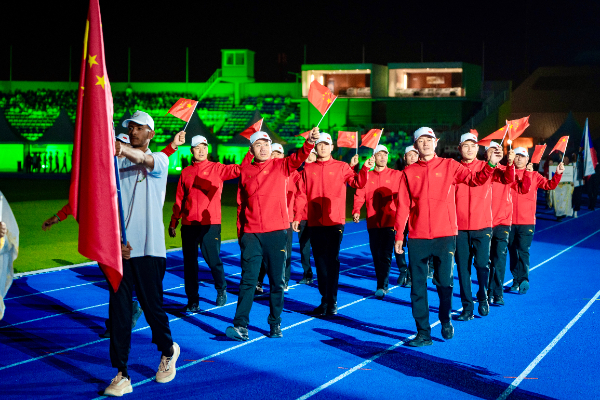 当地时间10月28日,第20届世界消防救援锦标赛在沙特首都利雅得市费萨尔·本·法赫德王子体育场开幕,中国消防救援代表队第五次出征该项赛事。