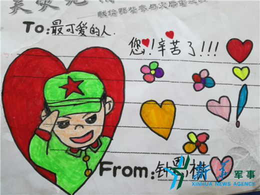 ????“官兵們很辛苦,早上6點就出門,直到深夜才回來休息。前天晚上,累了一天的官兵打著手電筒,幫助我們學(xué)校清理走廊的垃圾,扶正校園里被臺風(fēng)吹倒的樹木,讓學(xué)校師生非常感動?!蔽寰壍诙嶒瀸W(xué)校德育處負(fù)責(zé)人黃森說,小朋友們想用自己的方式表達(dá)對官兵的感謝,就自己動手制作了感恩卡。