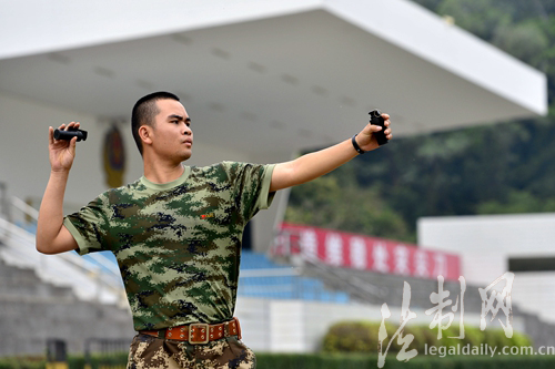 ????練兵場上空被投擲的防暴彈劃出一條條優(yōu)美的弧線。“八環(huán)、九環(huán)、十環(huán)……?!眻蟀袉T響亮的聲音響徹練兵場。班長蔡錦彬投擲的防暴彈仿佛對靶心有向心力,一環(huán)比一環(huán)高;其他官兵也不甘示弱,剛剛創(chuàng)下的好成績不斷被刷新,戰(zhàn)士廖國勇猶如賽場上的一匹黑馬,憑著過硬的實力,一路過關(guān)斬將,奪得第一。(林宇華)
