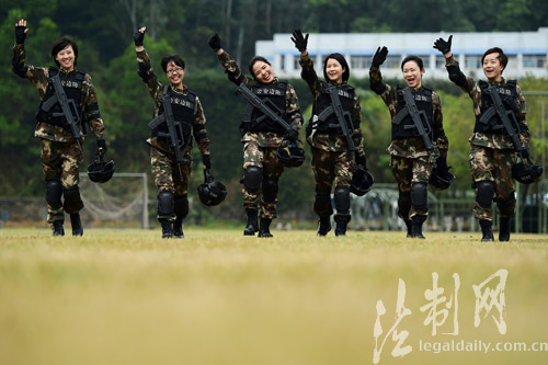 ????“干媽?zhuān)姨肽懔?!”“?duì)長(zhǎng),我要給你個(gè)擁抱!”“我也要來(lái)個(gè)熊抱!”在深圳銀湖山下的邊防警營(yíng),記者現(xiàn)場(chǎng)看到,陳偉紅所到之處皆有掌聲,戰(zhàn)士們熱情的上前打招呼、話家常、送祝福。特別是在訓(xùn)練場(chǎng),一支六人組成的“霸王花”小分隊(duì)格外搶眼,手握九五式鋼槍?zhuān)_穿新式防爆靴,個(gè)個(gè)全副武裝、英姿颯爽,走起路來(lái)虎虎生風(fēng);細(xì)一掂量,僅身上的防彈背心、頭盔、鋼槍就有三十多斤重,均為目前的先進(jìn)裝備??吹疥愱?duì)長(zhǎng)到來(lái),霸王花們又變成了小姑娘,紛紛涌向老大姐,拉家常、話思念?!拔覀兌际谴蠼愕耐降埽 迸形拘⒄f(shuō)。作戰(zhàn)訓(xùn)練科賴(lài)紹坤科長(zhǎng)介紹,該支隊(duì)作為全國(guó)公安邊防部隊(duì)的機(jī)動(dòng)力量,常年擔(dān)負(fù)多項(xiàng)緝私、緝毒、救援、處突任務(wù);而該支隊(duì)平日里,這些女干部主要分布在各機(jī)關(guān)業(yè)務(wù)科室,但是只要任務(wù)需要,她們都將奔赴第一現(xiàn)場(chǎng);所以平時(shí)的訓(xùn)練同樣嚴(yán)格;“女干部和男干部一樣,無(wú)論在哪個(gè)崗位,每個(gè)季度都會(huì)組織進(jìn)行體能、技能考核!”(廖鍵)