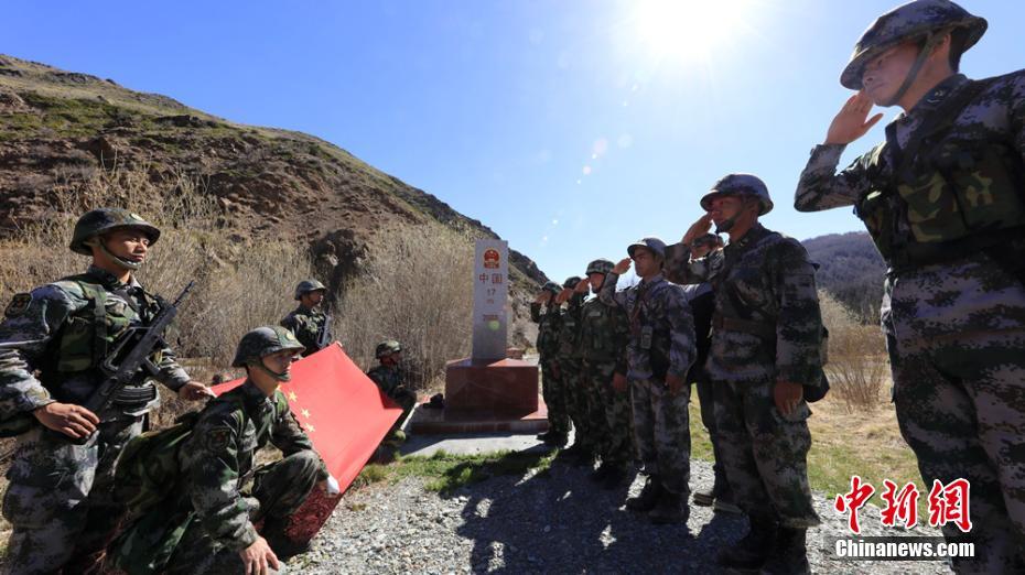 圖為5月15日,邊防官兵正在界碑前宣誓。 石曉坤 攝