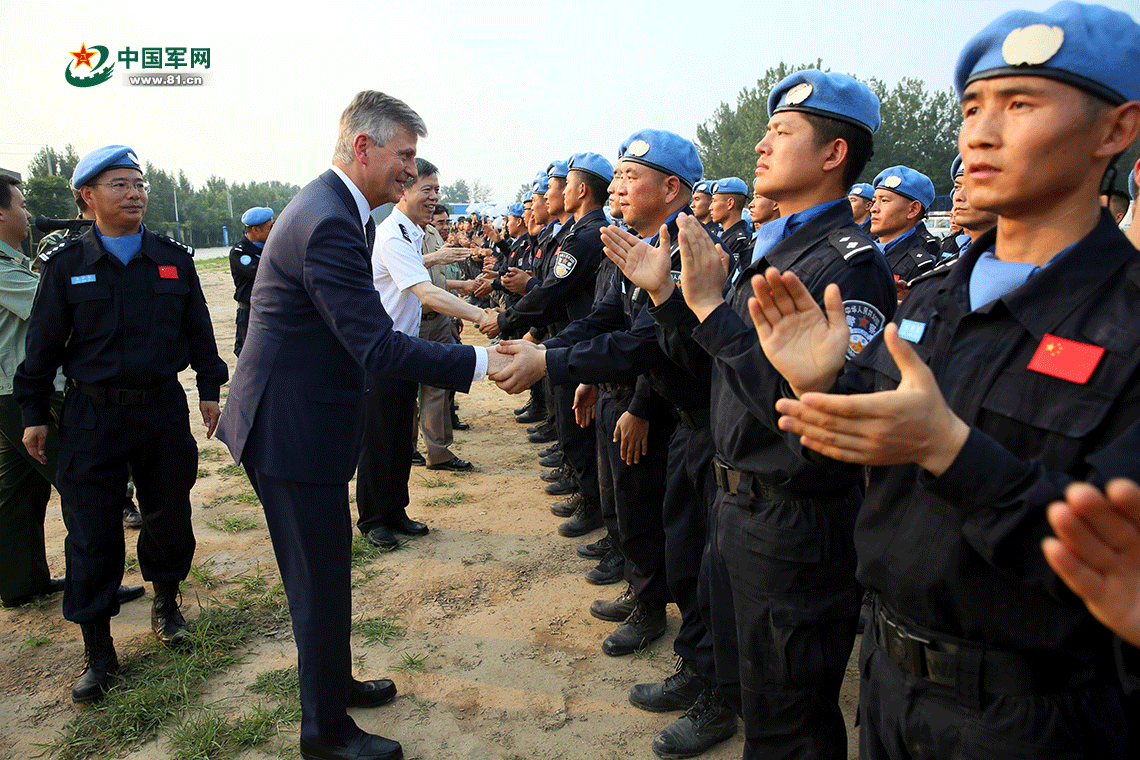 ????6月30日下午,聯(lián)合國(guó)負(fù)責(zé)維和行動(dòng)事務(wù)的副秘書長(zhǎng)拉克魯瓦視察中國(guó)維和警察培訓(xùn)中心,檢閱了正在那里參加集訓(xùn)的公安部常備維和警隊(duì)培訓(xùn)班,現(xiàn)場(chǎng)觀摩了實(shí)戰(zhàn)科目演練。他對(duì)中國(guó)常備維和警隊(duì)的優(yōu)異表現(xiàn)給予高度贊賞。