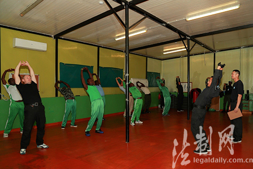 ????“左手抓對方拇指向外旋,右手托對方肘部,轉(zhuǎn)跨、擰腰……”警務(wù)實戰(zhàn)教官王變闖一邊神情自若地講解著動作要領(lǐng),一邊干脆利落地完成一個精彩的“控腕翻肘”解脫動作演示,配手應(yīng)聲倒地“就范”?!癢ow……Good!”伴隨著一陣驚嘆,現(xiàn)場膚色各異的國際“學員”紛紛向中國教官豎起大拇指,報以雷鳴般的掌聲。近日,中國第五支駐利比里亞維和警察防暴隊警務(wù)實戰(zhàn)培訓班在任務(wù)區(qū)“驚艷”亮相。