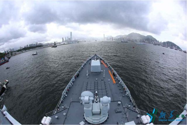 ↑7月7日,海軍銀川艦駛?cè)胂愀郯捍薮a頭。新華社記者 曾濤 攝