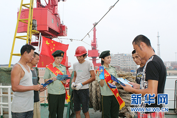 濰坊邊檢官兵正在向群眾發(fā)放宣傳冊。??????