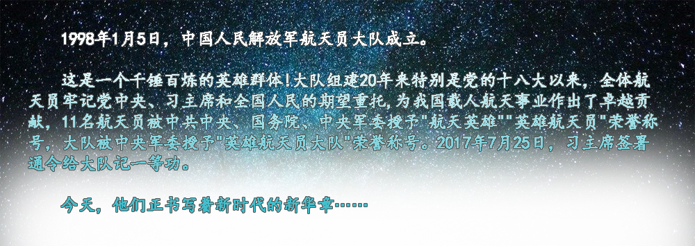 ??? 寧可備而不用,決不用而無備。1998年,我和其他14名戰(zhàn)友一起,懷著對載人航天事業(yè)的無限熱愛和憧憬,義無反顧地投身這一承載著中華民族千年飛天夢想的偉大事業(yè)。我先后入選神十、神十一飛行任務(wù)乘組梯隊,但每一次都與飛天失之交臂。直到今天,我和戰(zhàn)友們一樣,還在堅持不懈地開展訓(xùn)練。因為我知道,無論是否執(zhí)行飛行任務(wù),任務(wù)的成功就是我的成功,戰(zhàn)友在天上的表現(xiàn)就是我的表現(xiàn),我愿永遠(yuǎn)做筑夢九天的基石,為建設(shè)航天強國當(dāng)好陪練,守望初心,堅守寂寞。?
