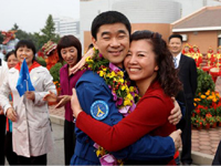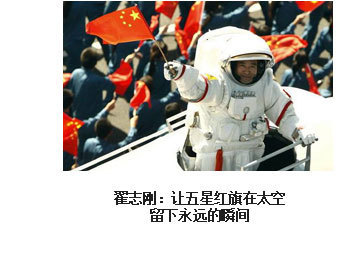 ??? 漫步太空、紅旗永駐。2008年9月27日16時43分,浩渺太空,敞懷相迎,我在戰(zhàn)友伯明、海鵬的協(xié)助和支持下,打開軌道艙艙門,邁出了中國人在茫茫太空中的第一步。在19分35秒的艙外活動中,我隨飛船一起飛過了9165公里,成為中國“飛得最高、走得最快”的人。然而,成功并不代表成熟,一切仍要從零開始。后續(xù)的空間站任務(wù)、登陸月球……路還很長,挑戰(zhàn)還很多,需要付出和努力的也還很多。對于我來說,沒有停歇的腳步,只有奮進(jìn)的號角。