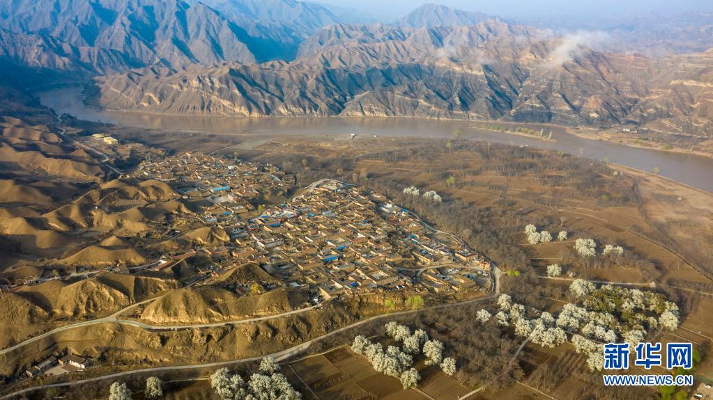 這是位于寧夏中衛(wèi)市黃河黑山峽河段的南長(zhǎng)灘村(4月5日攝,無(wú)人機(jī)照片)。