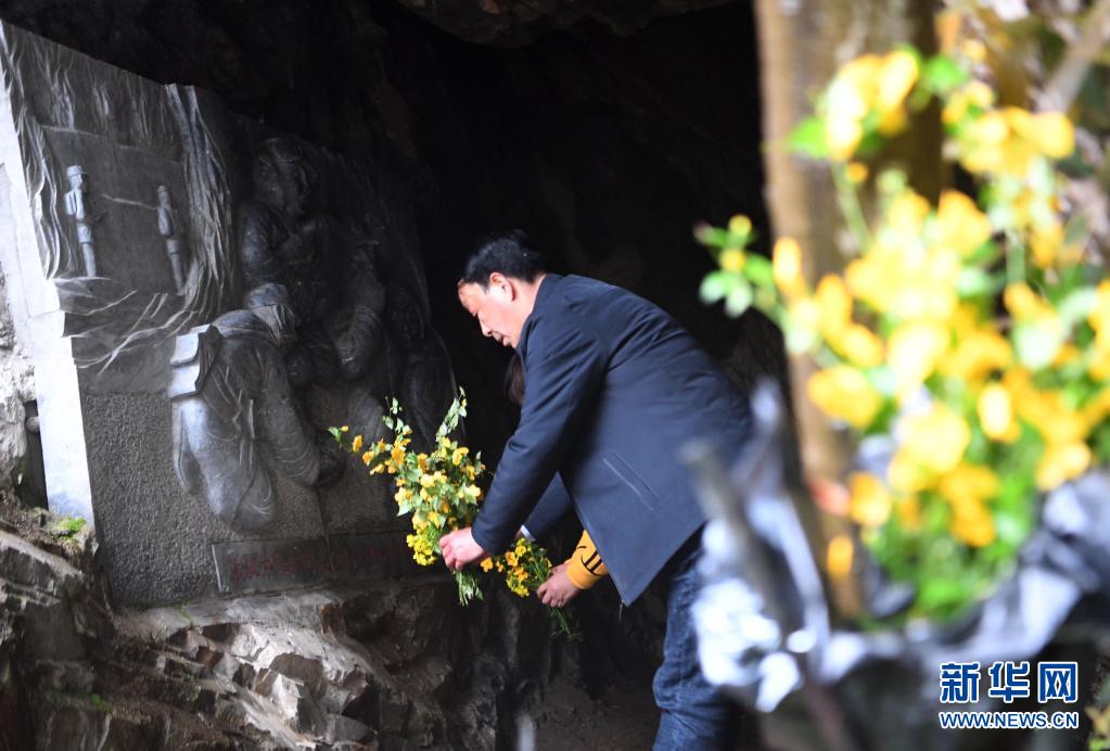 4月2日,曾祥有在金剛臺紅軍洞里獻(xiàn)花祭奠。