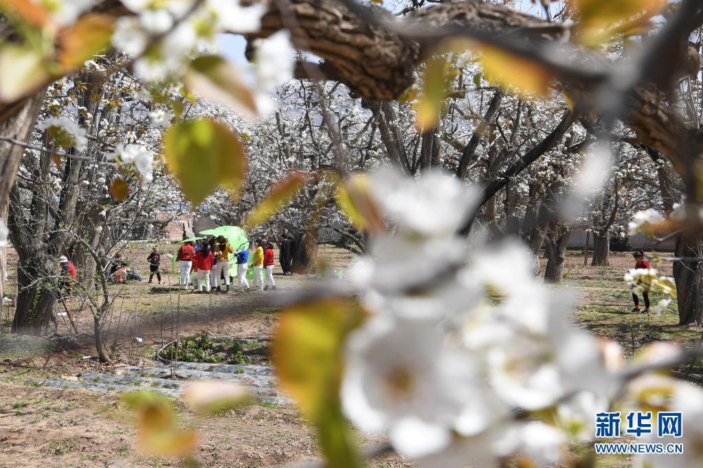 近日,位于甘肅省蘭州市皋蘭縣什川鎮(zhèn)的古梨園梨花盛開(kāi),吸引眾多游客前來(lái)賞花踏青。