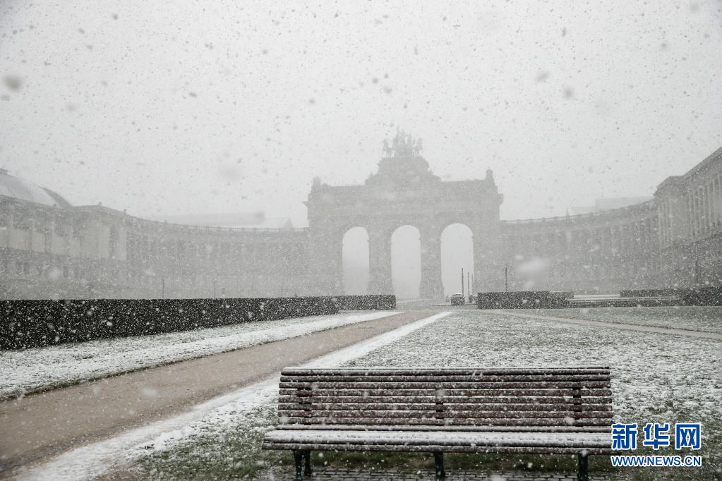 這是4月6日在比利時(shí)布魯塞爾五十周年紀(jì)念公園拍攝的雪景。