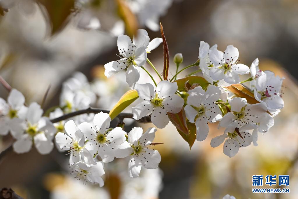 這是4月11日在鐵門關(guān)市一處梨園拍攝的梨花。新華社記者 丁磊 攝