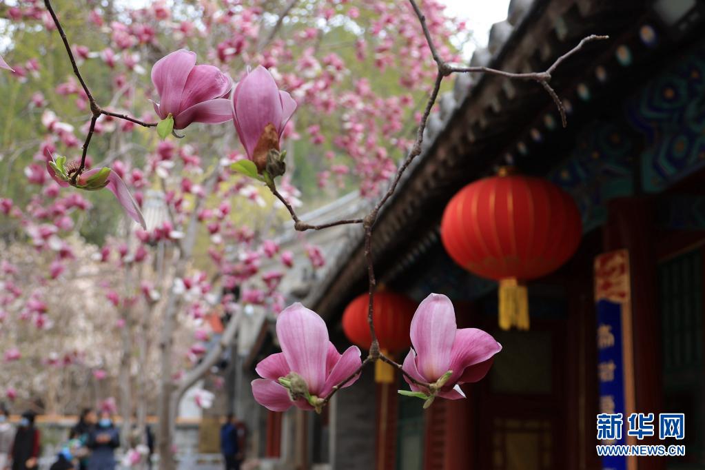 4月10日在北京潭柘寺拍攝的盛開的玉蘭花。新華社發(fā)(李學(xué)忠 攝)