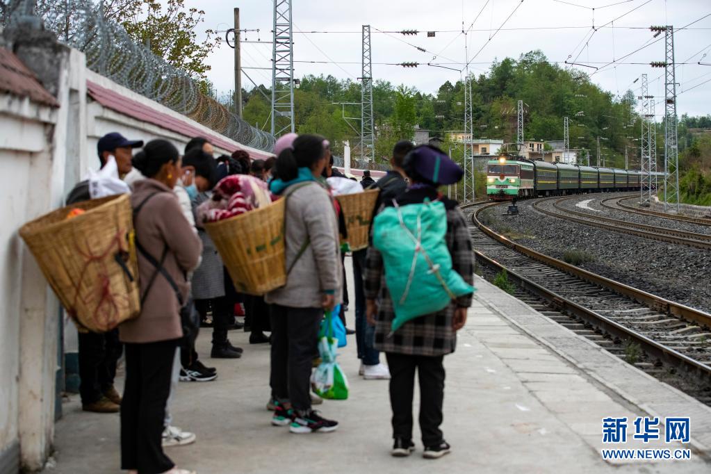 在成昆鐵路上普雄站,人們準(zhǔn)備乘坐5633次列車(chē)出行(4月11日攝)。新華社記者 沈伯韓 攝