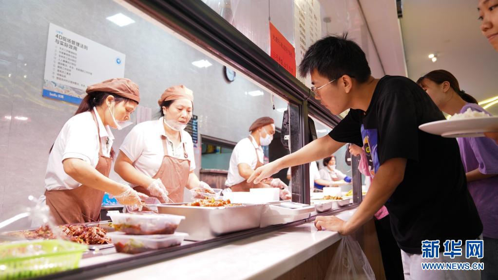 6月1日,趙建軍在學校食堂內(nèi)為母親打飯。新華社記者胡晨歡攝