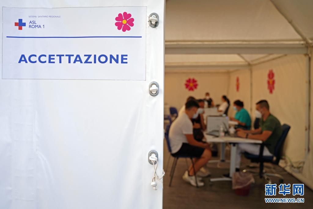 這是7月21日在意大利羅馬拍攝的一處新冠疫苗接種中心接待室。