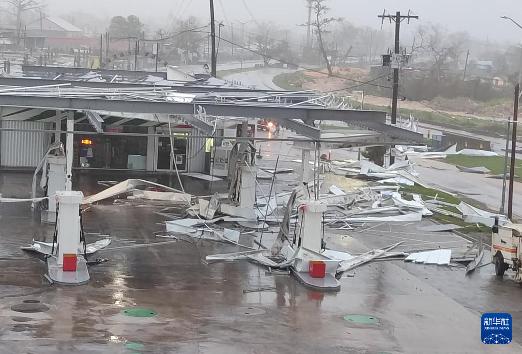 10月28日,在牙买加蒙特哥贝市,一处加油站在飓风中受损。