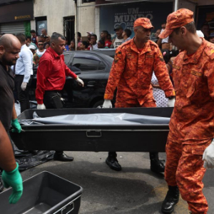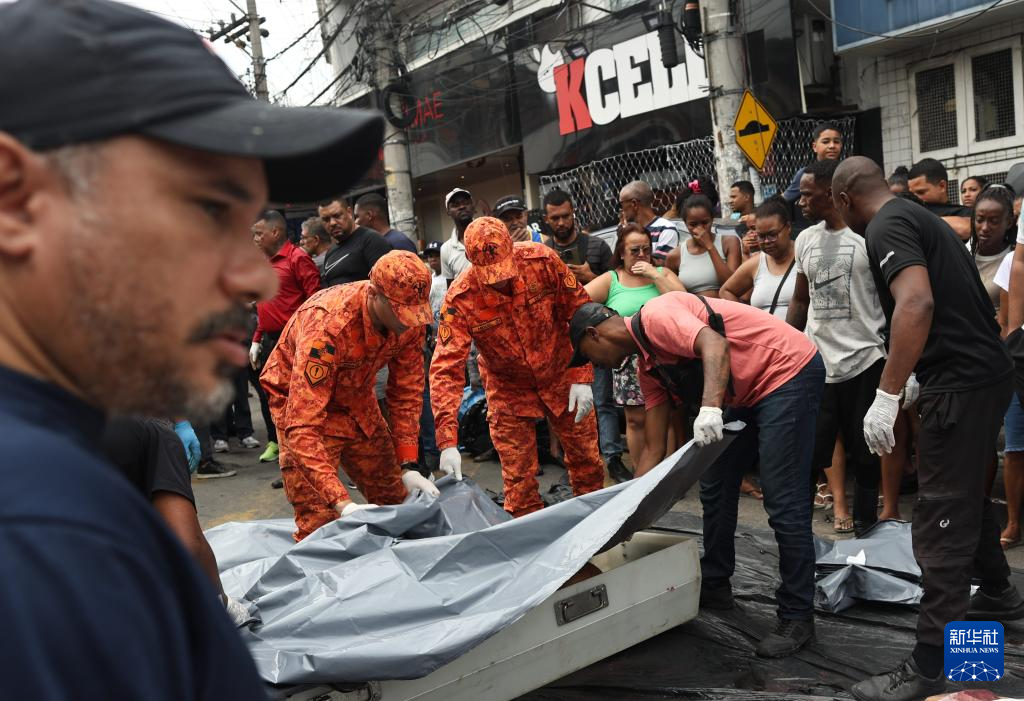 10月29日,在巴西里约热内卢的佩尼亚社区,救援人员将被击毙的犯罪嫌疑人遗体运离。