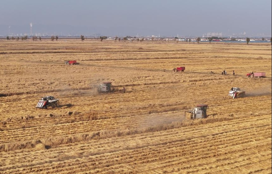 近日,黄河“几字弯”顶端一带天气晴好,农民抓紧时间抢收庄稼。