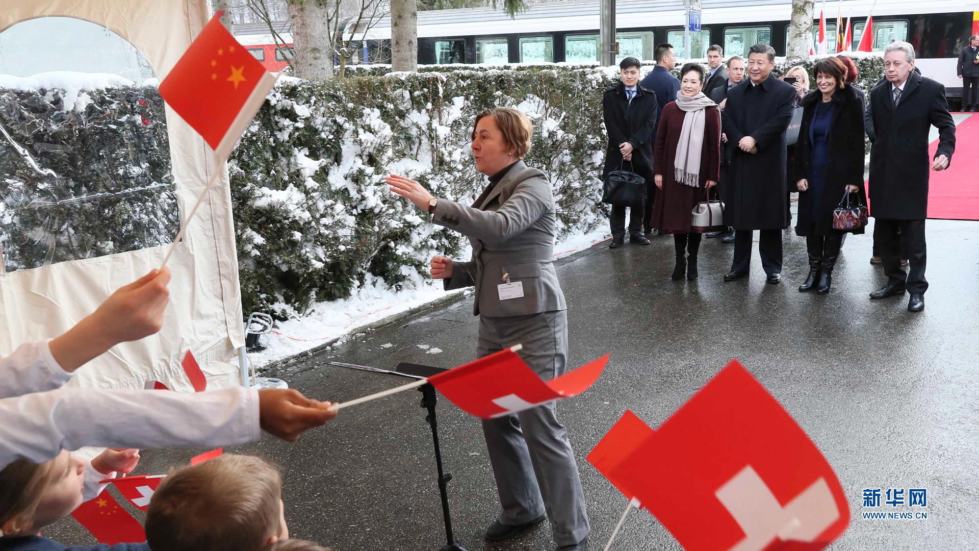 1月15日,國(guó)家主席習(xí)近平乘專機(jī)抵達(dá)蘇黎世,開始對(duì)瑞士聯(lián)邦進(jìn)行國(guó)事訪問。這是當(dāng)?shù)貎和蛄?xí)近平和夫人彭麗媛獻(xiàn)上鮮花。新華社記者蘭紅光攝2017-01-16