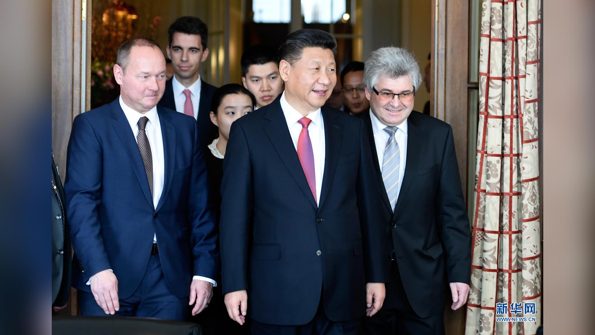 1月16日,國(guó)家主席習(xí)近平在伯爾尼會(huì)見瑞士聯(lián)邦國(guó)民院議長(zhǎng)施塔爾和聯(lián)邦院議長(zhǎng)比紹夫貝爾格。 新華社記者 張鐸 攝2017-01-17