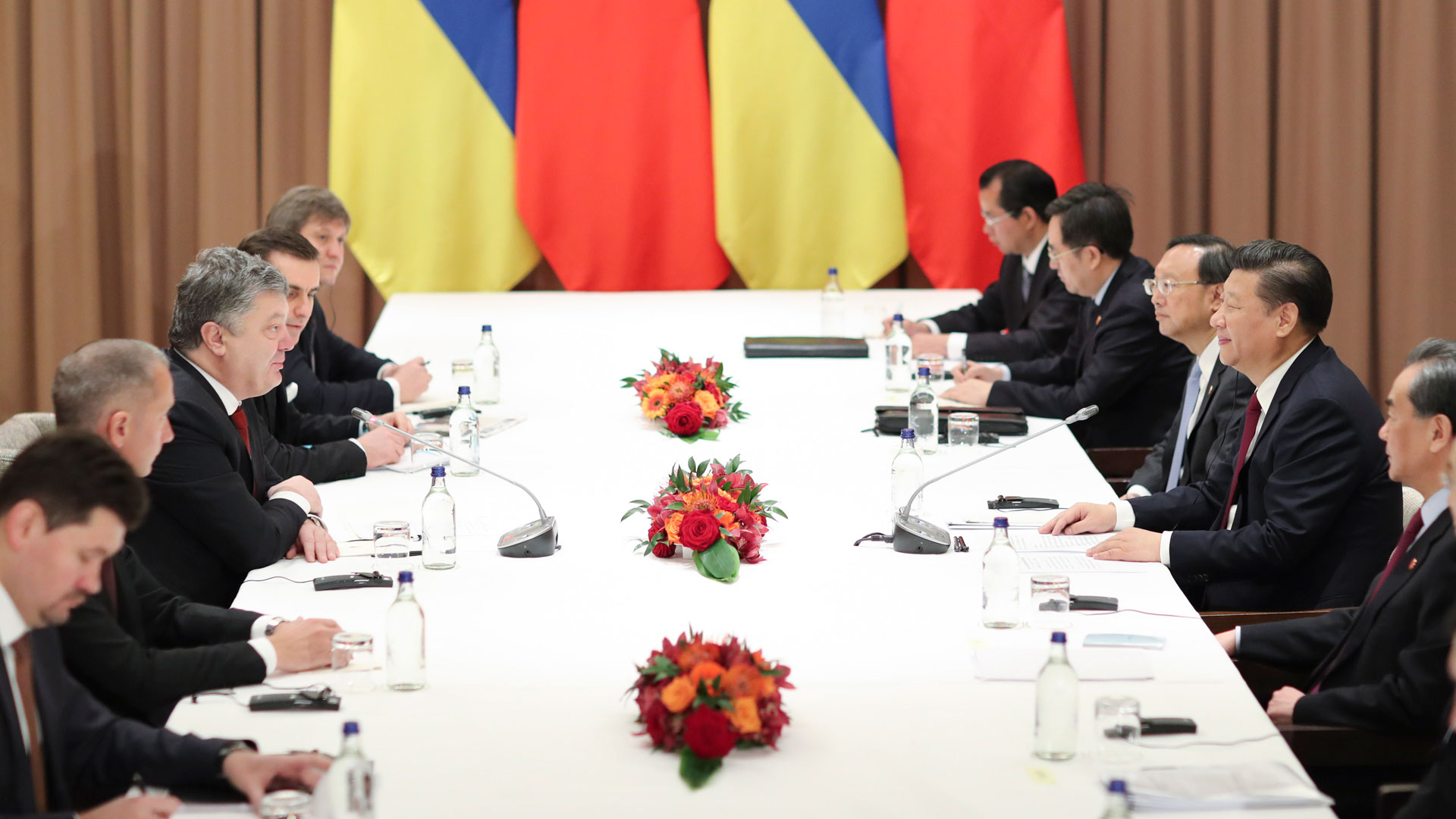 1月17日,國(guó)家主席習(xí)近平在瑞士達(dá)沃斯會(huì)見烏克蘭總統(tǒng)波羅申科。新華社記者 丁林 攝2017-01-18