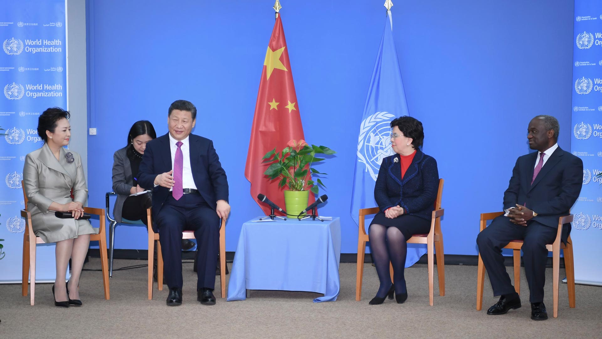 1月18日,國(guó)家主席習(xí)近平在瑞士日內(nèi)瓦訪問世界衛(wèi)生組織并會(huì)見陳馮富珍總干事。 新華社記者 吳曉凌 攝2017-01-19