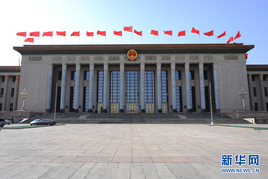 ????3月12日,十二屆全國人大三次會議在北京人民大會堂舉行第三次全體會議。圖為人民大會堂外景。 新華網(wǎng)/中國政府網(wǎng) 翟子赫 攝