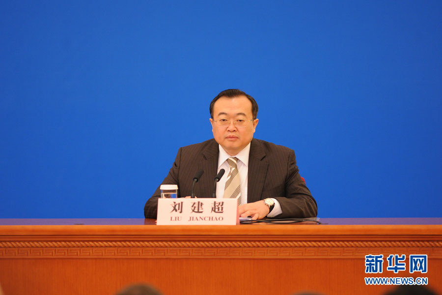 ????3月15日,國務院總理李克強在人民大會堂三樓金色大廳會見采訪十二屆全國人大三次會議的中外記者并回答記者提出的問題。圖為外交部部長助理兼新聞司司長劉建超。新華網(wǎng)/中國政府網(wǎng) 翟子赫 攝