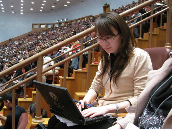 圖為記者在工作中