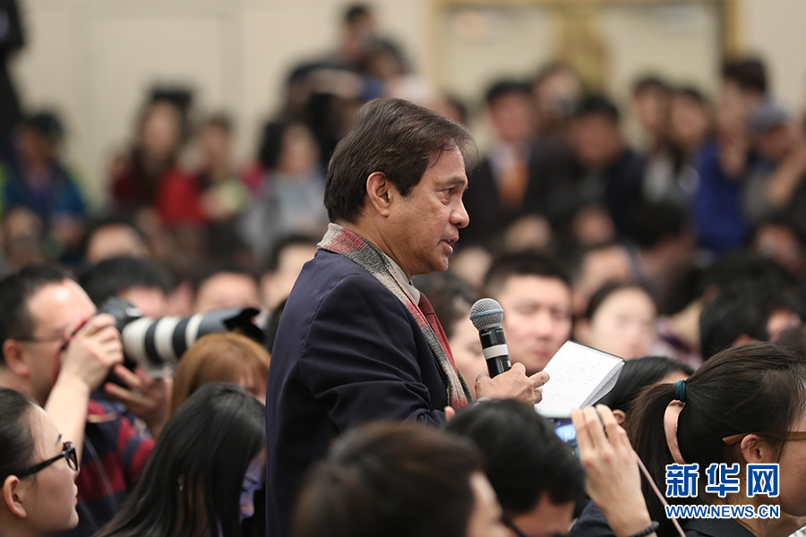 十二屆全國人大五次會議新聞中心于3月8日(星期三)10時在梅地亞中心多功能廳舉行記者會,邀請外交部部長王毅就“中國的外交政策和對外關(guān)系”的相關(guān)問題回答中外記者的提問。圖為美國全國廣播公司記者提問。新華網(wǎng)/中國政府網(wǎng) 孫韜 攝