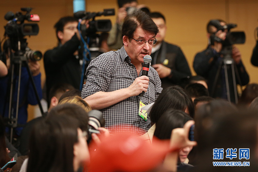 3月11日,十二屆全國(guó)人大五次會(huì)議新聞中心舉行記者會(huì),主題是“改革開(kāi)放調(diào)結(jié)構(gòu) 創(chuàng)新驅(qū)動(dòng)促發(fā)展”,商務(wù)部部長(zhǎng)鐘山、副部長(zhǎng)王受文、副部長(zhǎng)錢克明出席并回答中外記者的提問(wèn)。圖為彭博新聞社記者提問(wèn)。 新華網(wǎng)/中國(guó)政府網(wǎng) 王健 攝