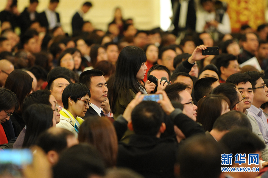 3月15日上午,國務(wù)院總理李克強(qiáng)在人民大會堂三樓金色大廳會見采訪十二屆全國人大五次會議的中外記者并回答記者提出的問題。圖為新加坡聯(lián)合早報記者提問。新華網(wǎng)/中國政府網(wǎng) 翟子赫 攝