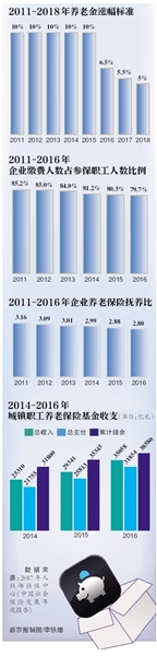 據(jù)中國社會保障學(xué)會編寫的《中國社會保險發(fā)展年度報告(2016)》顯示,城鎮(zhèn)企業(yè)職工養(yǎng)老保險基金在2014年支付月數(shù)在5個月以下的地區(qū)包括新疆生產(chǎn)建設(shè)兵團(tuán)和黑龍江,這兩個地區(qū)分別可支付3個月和3.5個月。報告認(rèn)為,未來基金缺口的風(fēng)險增大。