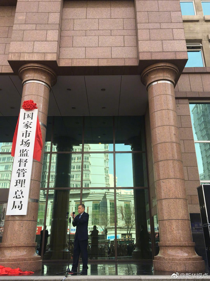 新組建的國(guó)家市場(chǎng)監(jiān)督管理總局4月10日正式掛牌。張茅任局長(zhǎng)、畢井泉任黨組書(shū)記。國(guó)家藥品監(jiān)督管理局同日揭牌,由國(guó)家市場(chǎng)監(jiān)督管理總局管理。(新華社“新華視點(diǎn)”微博)