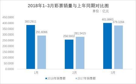 3月份,福利彩票機構(gòu)銷售197.95億元,同比減少0.35億元,下降0.2%。體育彩票機構(gòu)銷售203.92億元,同比增加22.89億元,增長12.6%。
