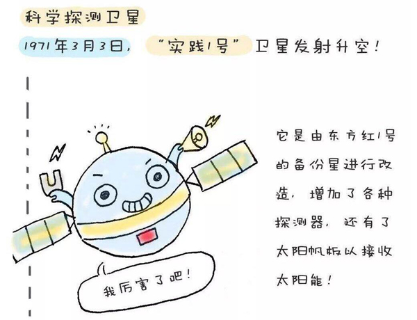 實(shí)踐一號衛(wèi)星是中國第一顆科學(xué)探測和技術(shù)實(shí)驗(yàn)衛(wèi)星,于1971年3月3日發(fā)射,重221公斤,外形為近似球體的多面體,直徑1米。它的主要任務(wù)是試驗(yàn)星上太陽能電池供電系統(tǒng),主動無源溫度控制系統(tǒng),長壽命遙測設(shè)備及無線電線路性能及其他太空環(huán)境探測。實(shí)踐一號的設(shè)計壽命為一年,實(shí)際在太空中工作了8年之久,直到1979年6月17日才返回大氣層燒毀。
