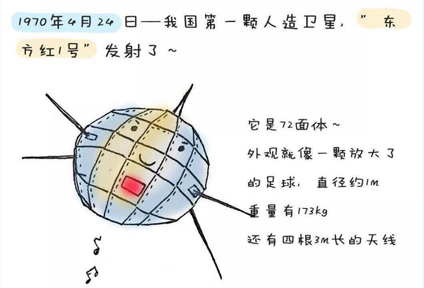 1970年4月24日,我國成功發(fā)射第一顆人造地球衛(wèi)星“東方紅1號”。衛(wèi)星運(yùn)行軌道,距地球最近點(diǎn)四百三十九公里,最遠(yuǎn)點(diǎn)二千三百八十四公里,軌道平面和地球赤道平面夾角六十八點(diǎn)五度。繞地球一周一百一十四分鐘。衛(wèi)星重一百七十三公斤。該衛(wèi)星發(fā)射成功標(biāo)志著中國成為世界上第五個用自制火箭發(fā)射國產(chǎn)衛(wèi)星的國家。