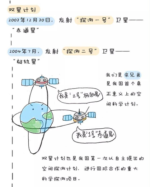 2003年12月30日,中國與歐洲空間局的合作項(xiàng)目“地球空間雙星探測計劃”中的第一顆衛(wèi)星“探測一號”成功發(fā)射。這是中國第一次發(fā)射高軌道衛(wèi)星,標(biāo)志著中國高水平的空間物理與環(huán)境探測進(jìn)入實(shí)質(zhì)性發(fā)展階段。2004年7月,“探測二號”衛(wèi)星升空,與已在軌運(yùn)行的“探測一號”衛(wèi)星構(gòu)成了具有創(chuàng)新特色的星座式獨(dú)立探測體系。兩顆衛(wèi)星互相配合,分別運(yùn)行于目前國際上地球空間探測衛(wèi)星尚未覆蓋的重要空間活動區(qū)域,主要進(jìn)行太陽活動、行星際擾動觸發(fā)磁層空間暴和災(zāi)害性地球空間天氣的物理過程等科學(xué)研究。