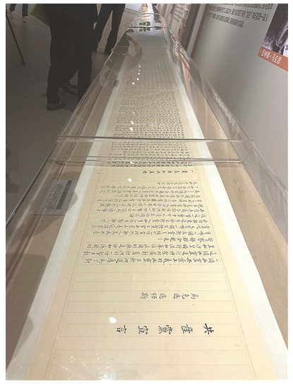 展廳中,一幅由5位江蘇書法家集體創(chuàng)作的22米長的《共產(chǎn)黨宣言》書法長卷,展示著《共產(chǎn)黨宣言》震撼人心的力量,同樣吸引了不少觀眾的目光。這幅小楷長卷有近一萬五千個漢字,由江蘇書法家孫曉云、王衛(wèi)軍、謝少承、張守躍、黃繼革聯(lián)合創(chuàng)作,在氣勢恢宏中傳遞著中華傳統(tǒng)書法的優(yōu)美。據(jù)悉,這也是國內(nèi)首次以中國傳統(tǒng)書法藝術形式詮釋馬克思主義經(jīng)典著作。