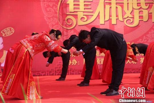 圖為新人們互相致禮?!√J柯柯 攝
