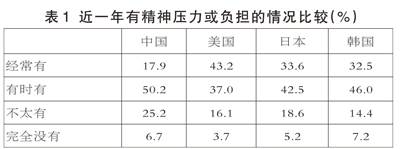 52.6%的中國高中生精神壓力來源于升學或畢業(yè)后的去向問題,韓國和美國高于中國,依次為59.2和53.0%,日本最低,為42.4%。