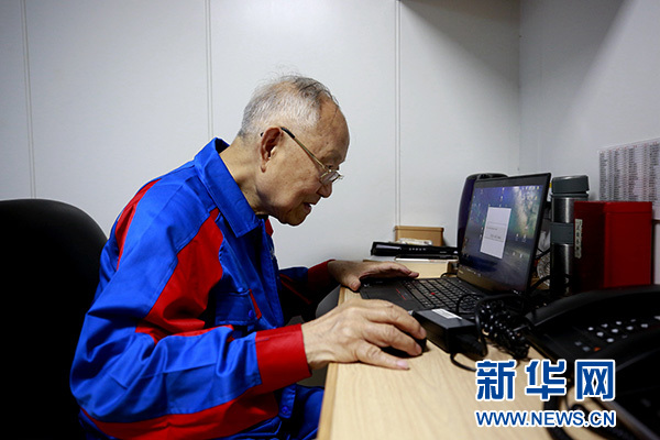 汪品先院士在“探索一號”科考船上工作(5月11日攝)。新華社記者 張建松 攝
