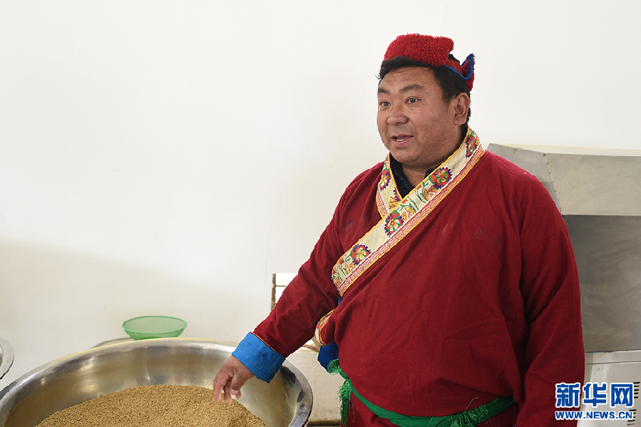 勒布溝特色產(chǎn)品農(nóng)牧民專業(yè)合作社負責(zé)人群增次仁向記者介紹情況(5月13日 攝)。新華網(wǎng)記者 陳琳 攝