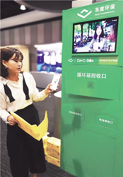 江蘇南京蘇寧物流推出的共享快遞盒提高了物流運(yùn)輸效率,并可循環(huán)使用。