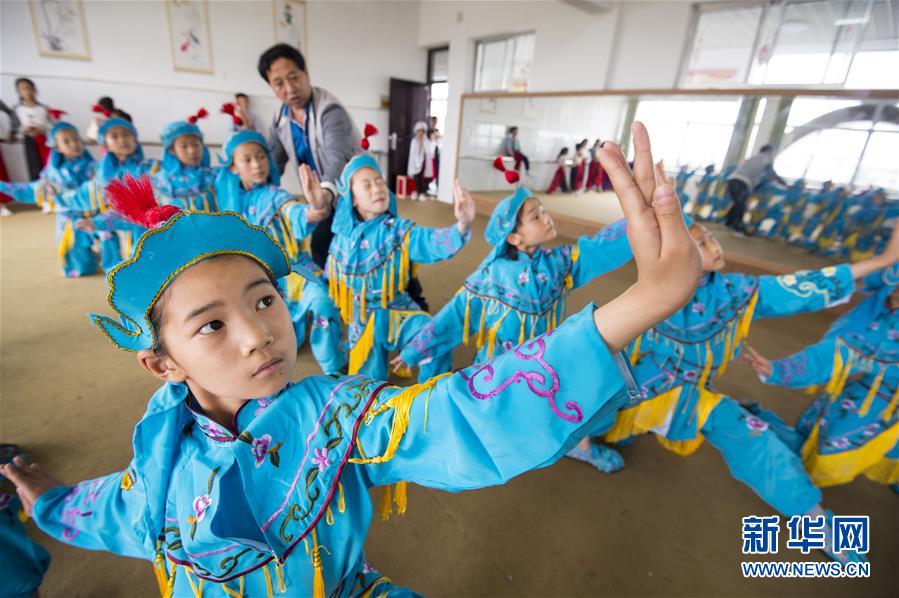 江蘇省南通市海安縣西場小學(xué)學(xué)生在練習(xí)京?。?月26日攝)。新華社發(fā)(徐勁柏 攝)