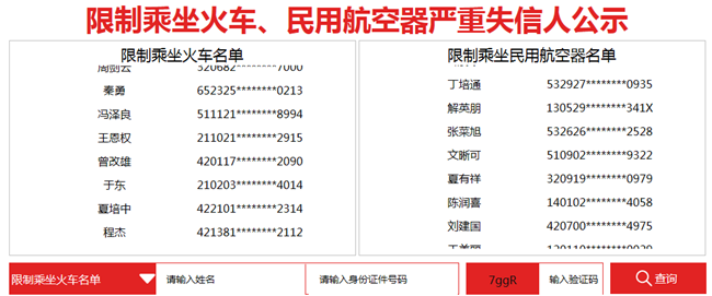 5月1日,國(guó)家發(fā)改委、鐵路總公司、民航局等部門聯(lián)合發(fā)布的《關(guān)于在一定期限內(nèi)適當(dāng)限制特定嚴(yán)重失信人乘坐火車 推動(dòng)社會(huì)信用體系建設(shè)的意見》和《關(guān)于在一定期限內(nèi)適當(dāng)限制特定嚴(yán)重失信人乘坐民用航空器 推動(dòng)社會(huì)信用體系建設(shè)的意見》正式實(shí)施。與此同時(shí),中國(guó)鐵路總公司發(fā)布的《關(guān)于限制鐵路旅客運(yùn)輸領(lǐng)域嚴(yán)重失信人購(gòu)買車票的管理辦法》同步實(shí)施。