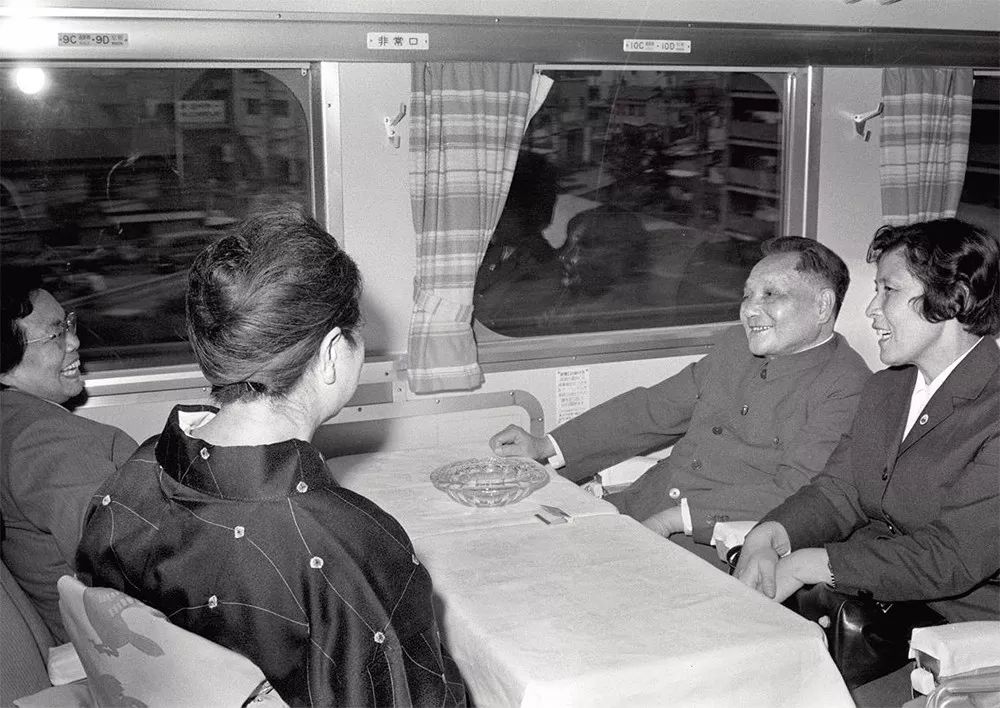 ▲ 1978 年10 月26 日,鄧小平離開東京乘新干線超特快列車赴京都訪問。這是鄧小平和夫人卓琳乘坐“光- 81 號”超特快列車